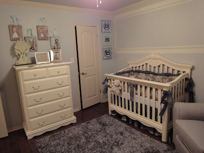 3. Speaking of Angela, while I was hanging some picture frames this afternoon that she hand-painted for Ivy's nursery I got a text message from Carmen Geoates with Keep It Gypsy telling me that my baby bedding WAS FINISHED!!!!!!!!! I literally started squealing with excitement! So much excitement that she even brought it over tonight and put it all together for me. How AWESOME is she!!!?? The nursery is just a few tiny pieces away from being complete. Let me take you on a tour of the Queen's palace.....